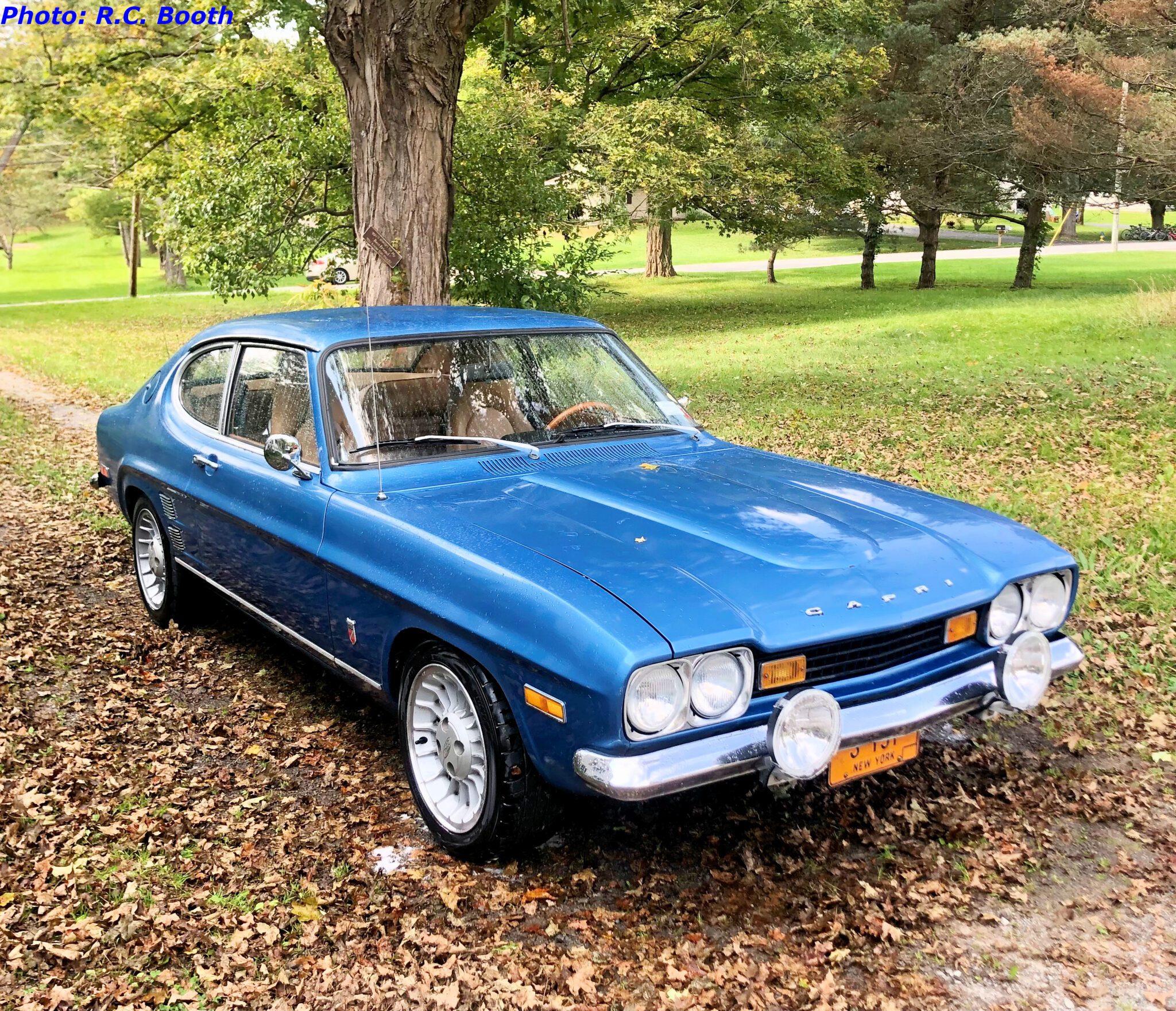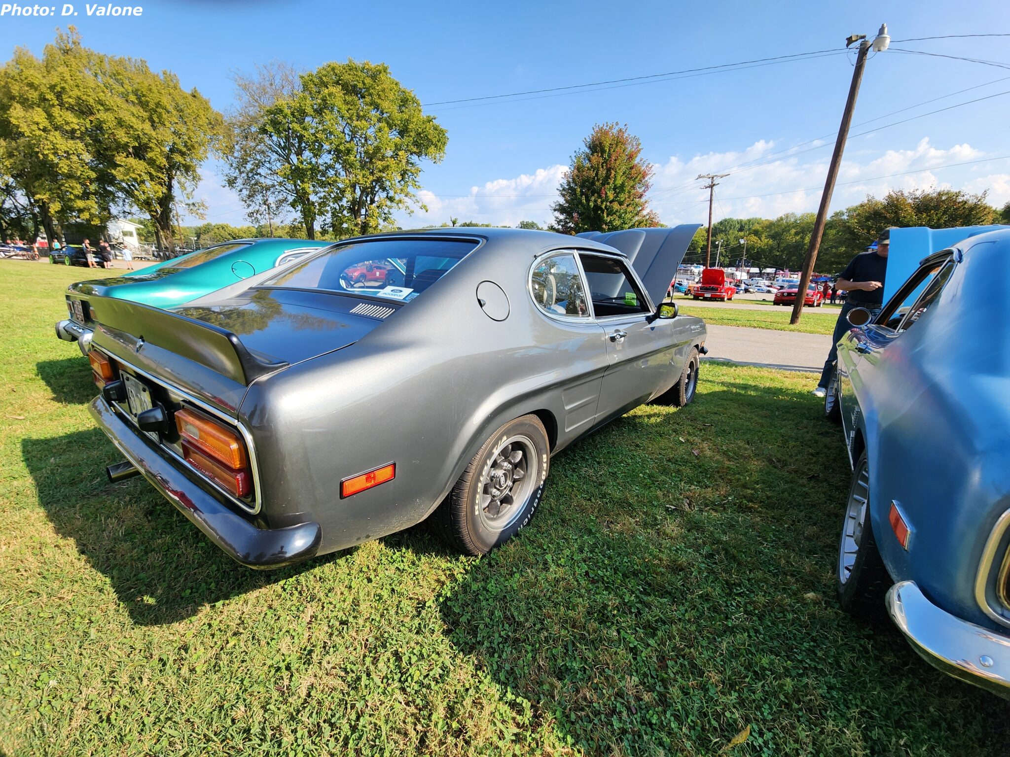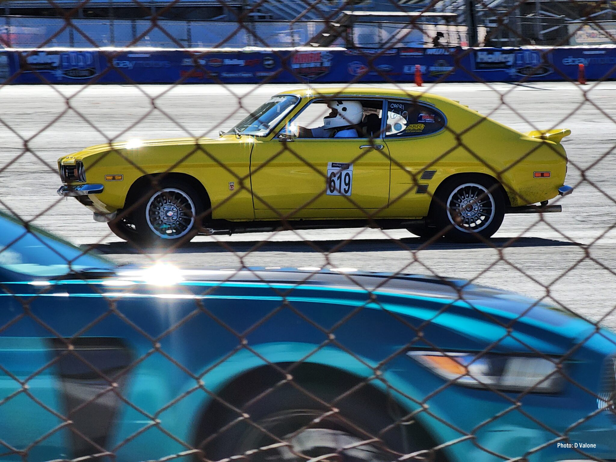 After negotiating spectator parking and paddock marshals, we found Norm and his support crew alongside the GT-140 Motor Home. One special crew member wrenching on the car was Alex Bennardo. Norm had offered a hands-on crewing spot to a young Capri enthusiast and selected Alex from the applicants. Other crew consisted of Ashley Miller and Wendy Cochran (both long-time Capri owners) . Norm was somewhat new to the car as a driver but knew it well through its provenance in US Capri racing circles. Past drivers include Sam Posey, Horst Kwech, and preceding owner / driver Ross Bremer. Aside from some minor oil seepage from the 3.0L Essex-based Weslake engine, the car ran well, and Norm rapidly lowered his practice and qualifying 1 times as his confidence in the car grew each session. The Swarmers left the track mid-afternoon, after Norm’s last run so that we could staff the welcoming committee for the Friday evening arrivals at the hotel. Most people set their own schedule and said “see you at there”. However, one group of 6-7 cars left together, and luckily for Steve Burris that they did. His ‘73 2600 V6 started acting up within 10 miles of Heath (oh, so close, another Turtle contender already?). With so many close friends in attendance, Steve was not found wanting for tools, parts or unsolicited technical opinions …. We pretty quickly surmised that his battery was flat due to a failed charging system. Fortunately, Mike Rahamut had a fully charged jump-pack in the trunk of his ‘74 2800, and that provided the required voltage to get Steve up-and-running again and back to the hotel. The observant among you might wonder “How did Steve manage with a battery boost pack under the hood”? Steve’s ‘73 is tastefully modified with a show-quality under-hood appearance. He relocated battery to the trunk (his blue ‘71 2.0L car is stock/restored). Post-event update: Root cause of the charging system issue was over-zealous use of dielectric grease causing a bad connection. Clean up was all that was required to remedy this.