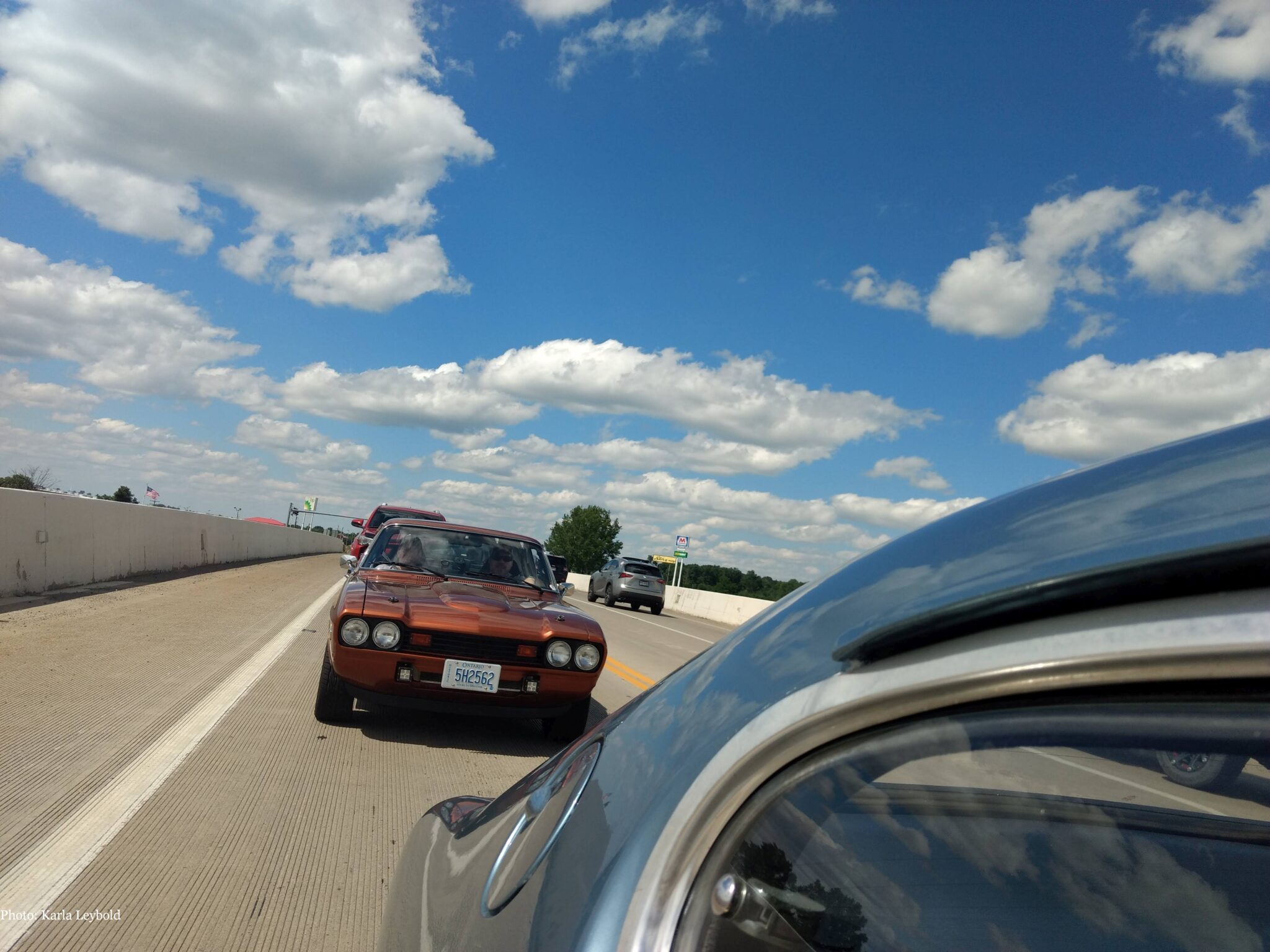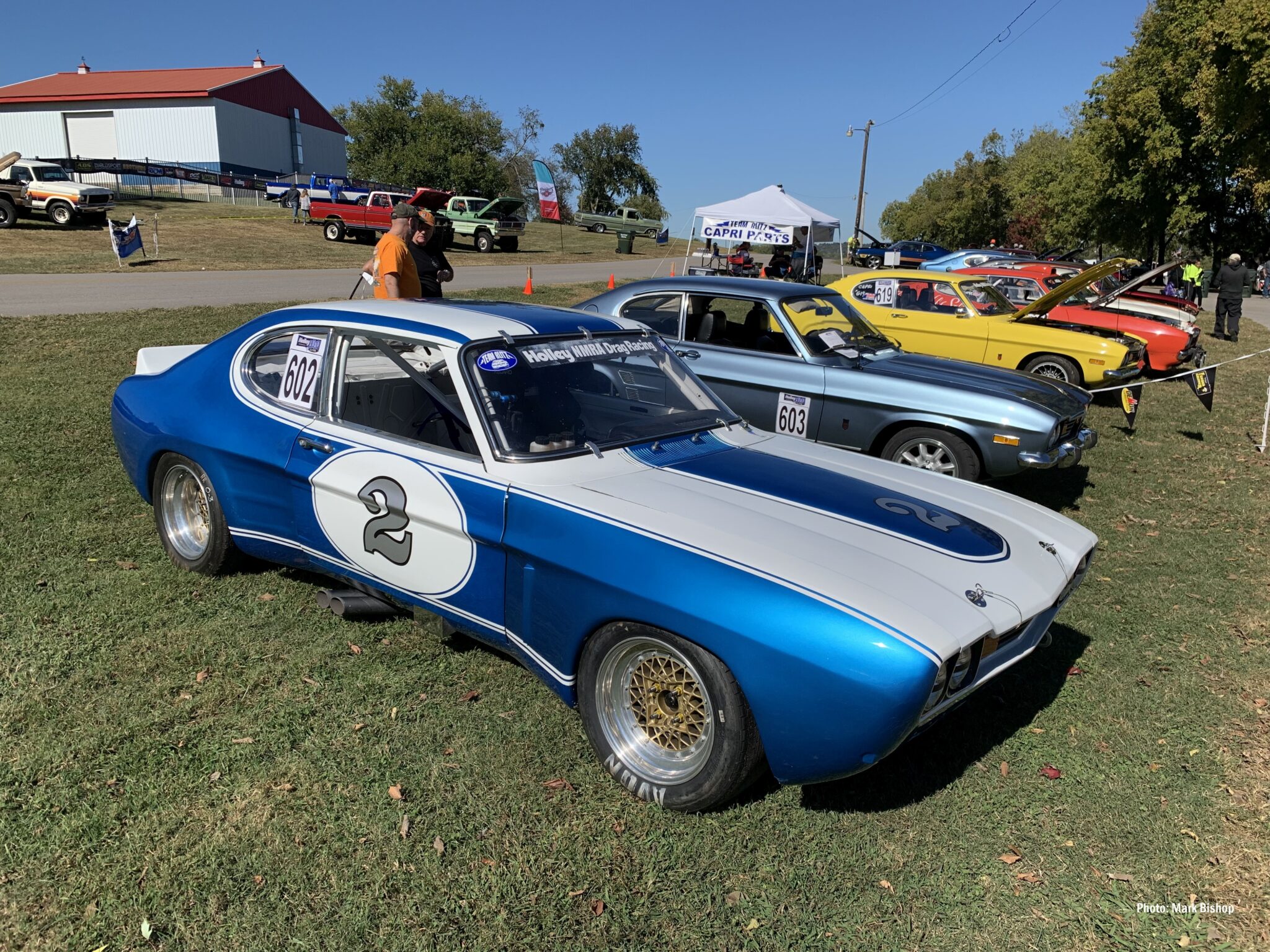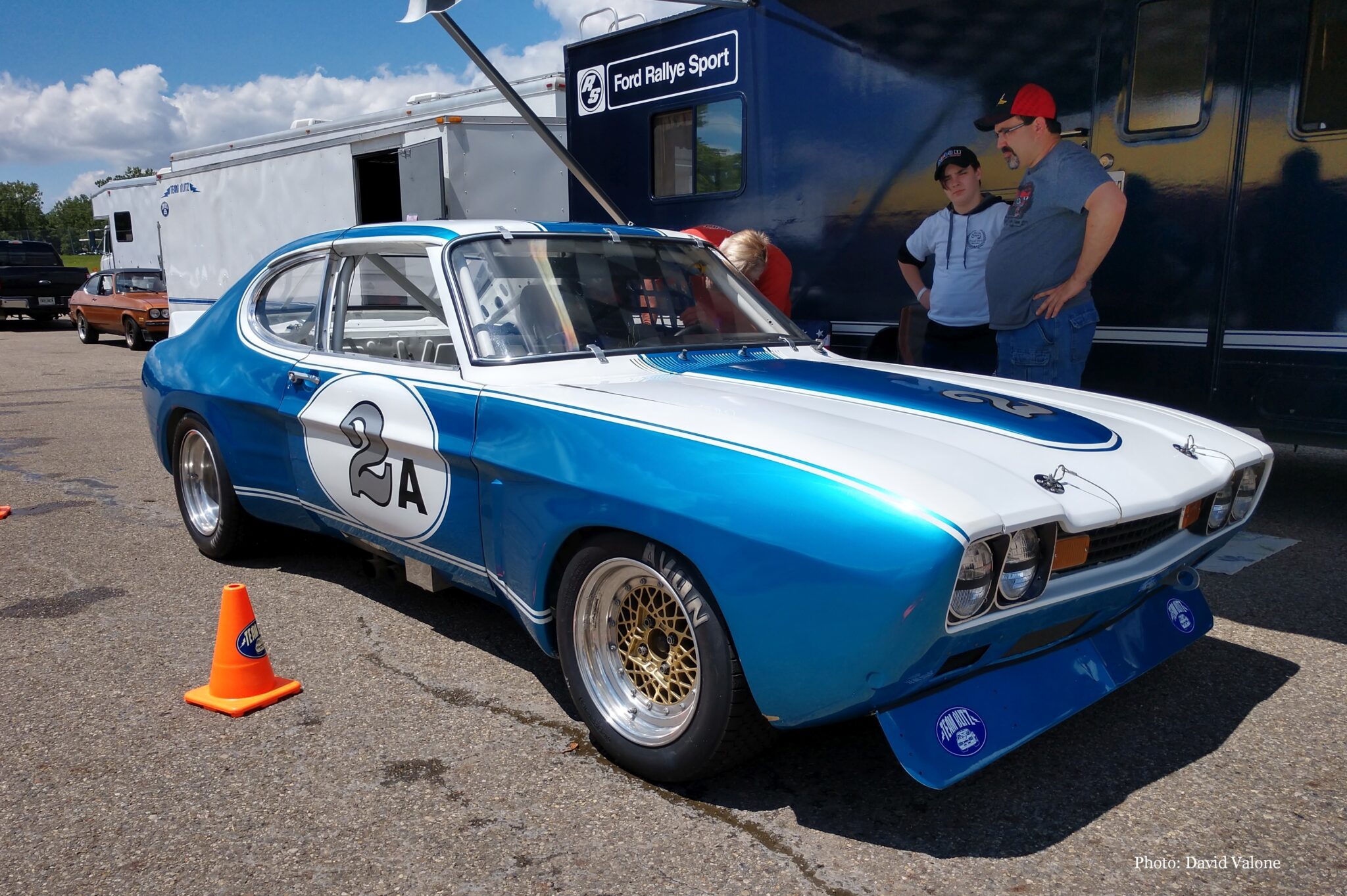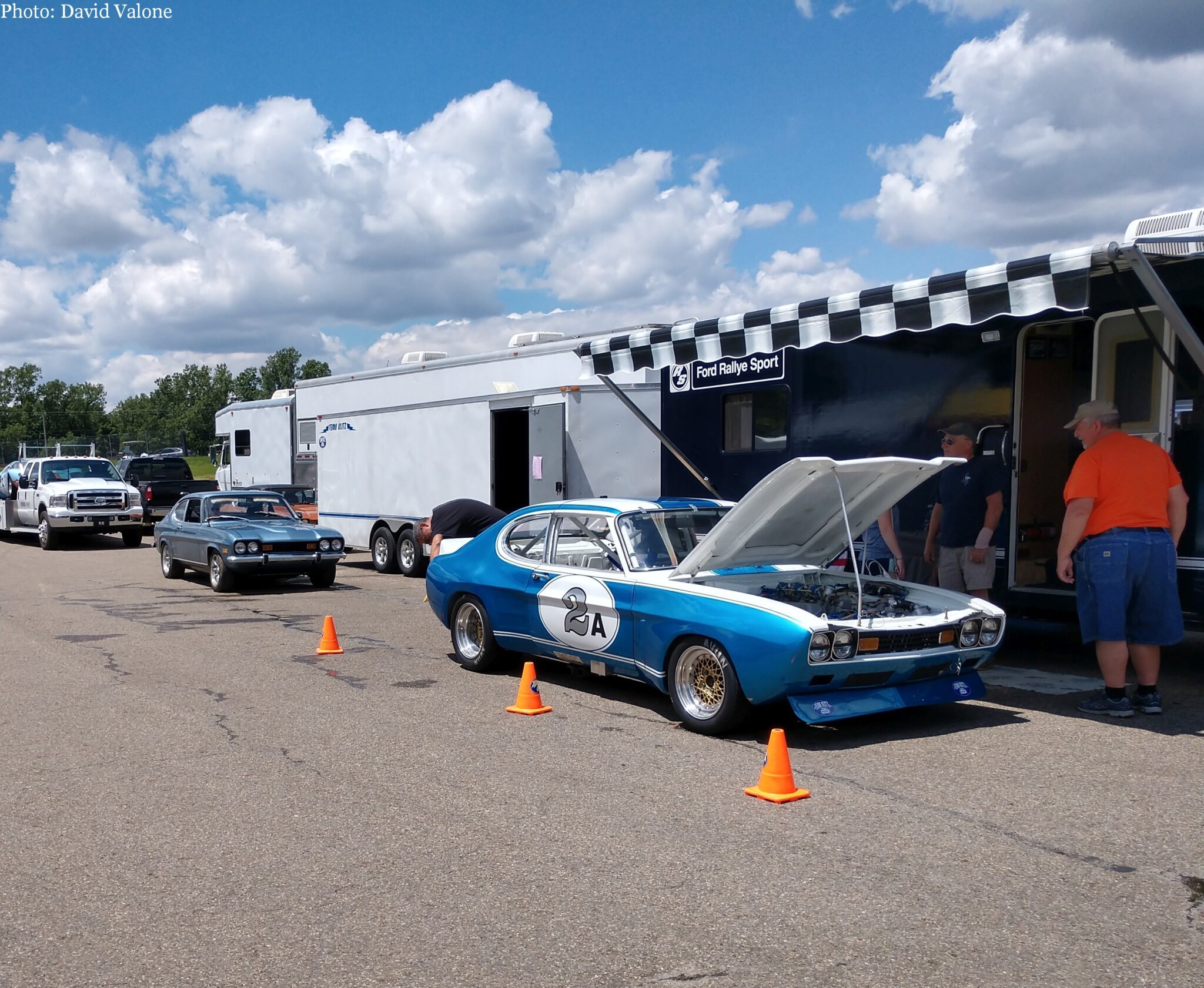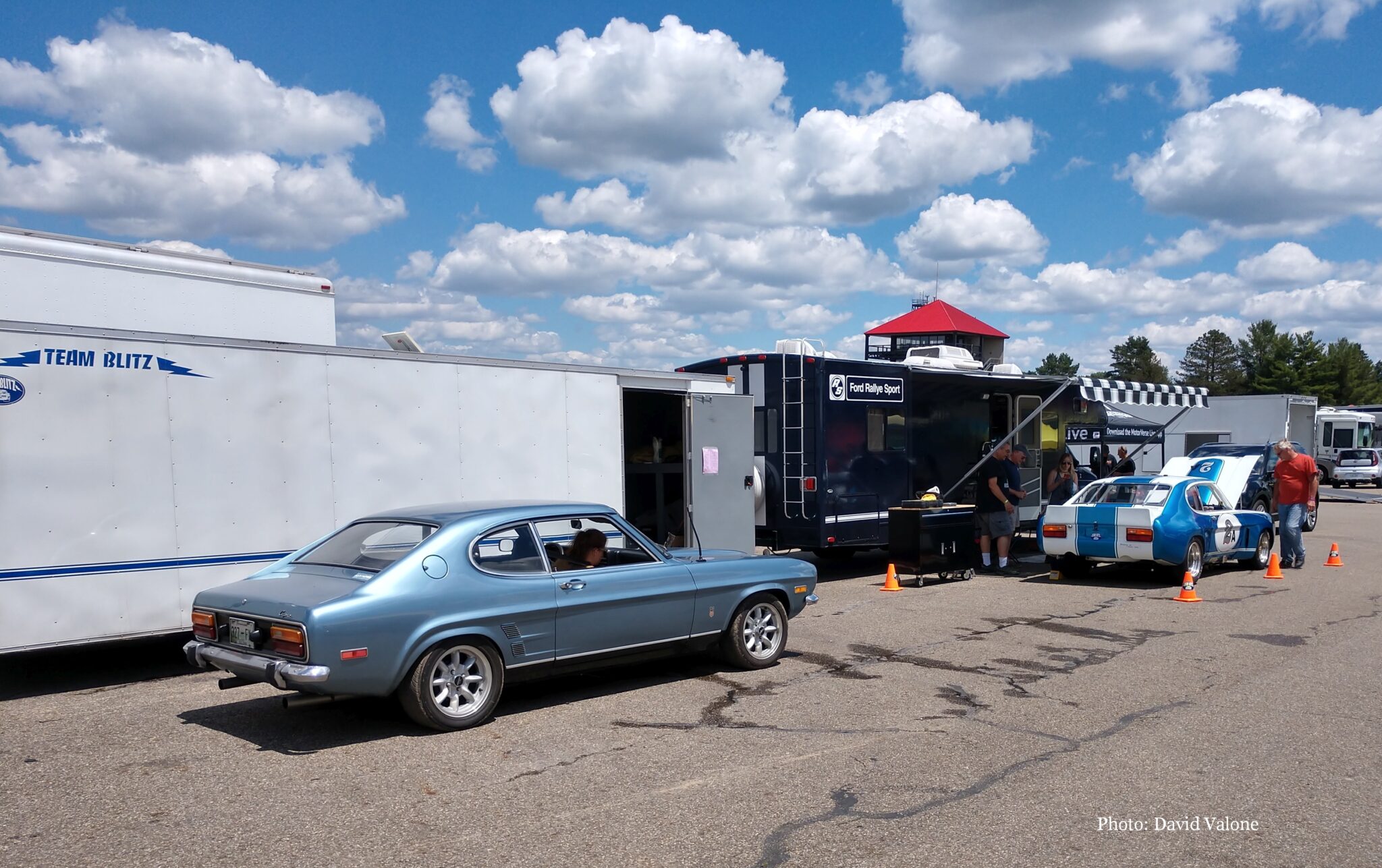 Friday dawned bright and sunny. We gathered up all day-trippers after the complimentary Hampton Inn breakfast (always good) and headed for our destination: the Mid Ohio Sports Car Course. This is where Norm Murdock of Team Blitz and CCNA founder was running his recently acquired ex-Werkes vintage-race Capri in the SVRA Grand Prix of Mid Ohio. We set off from the hotel with 5 Capri’s for the the 57 mile, 1 ½ hour road trip to Mid Ohio. Many Swarm participants, who were travelling from the north, elected to meet us there instead of backtracking. However, some hardly souls wanted the complete Swarm experience, and travelled back from whence they had just come the day before!
