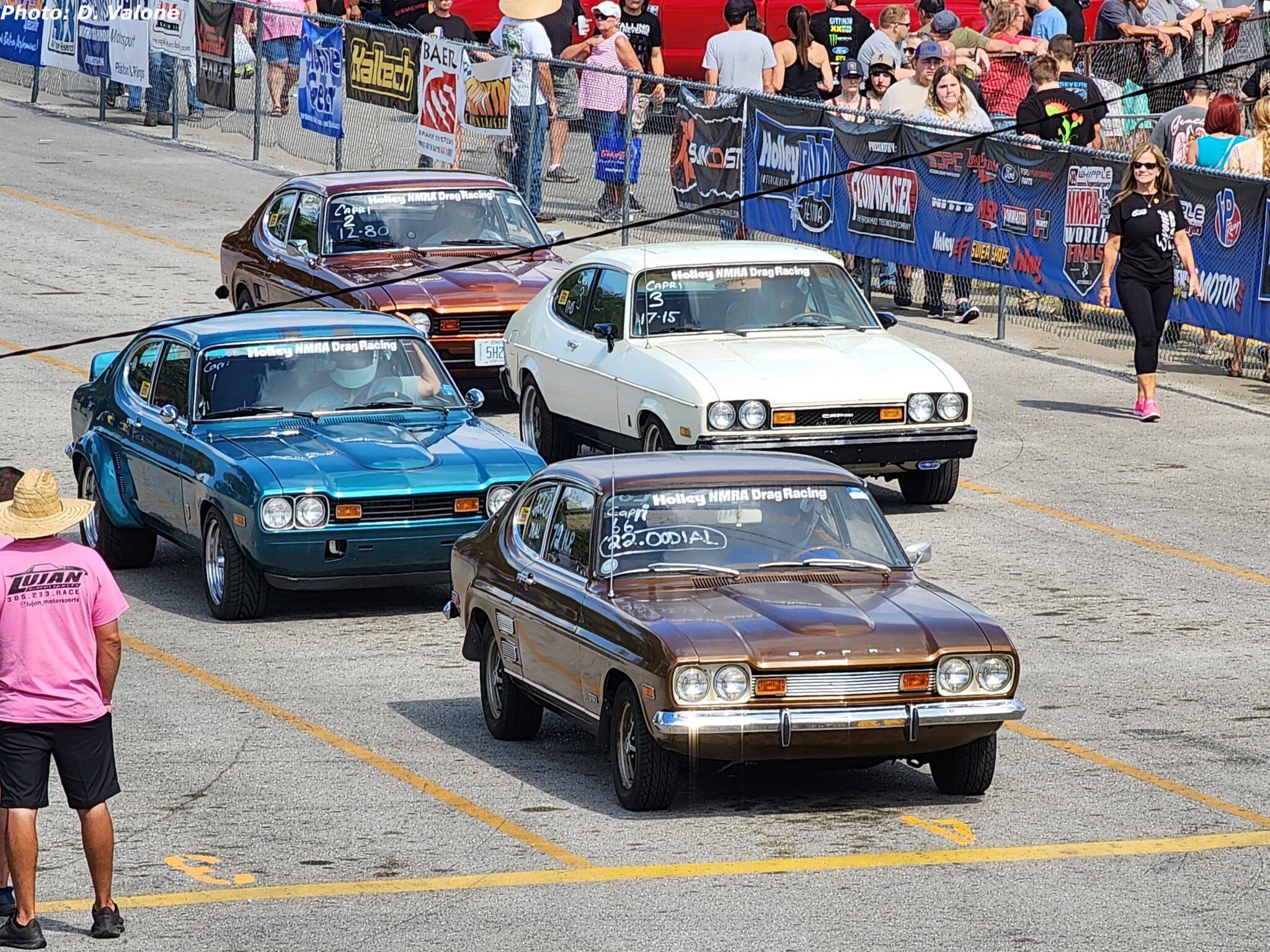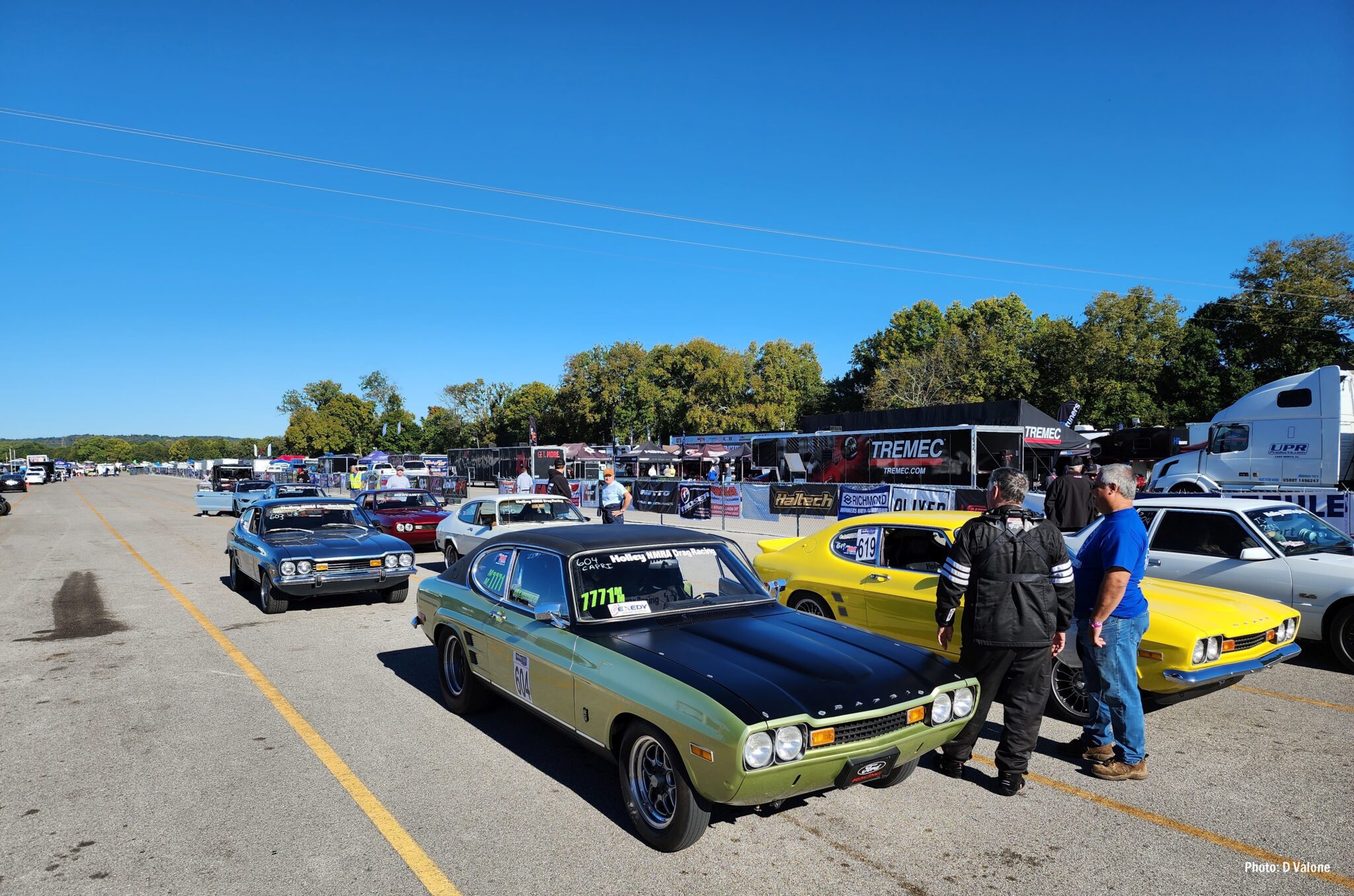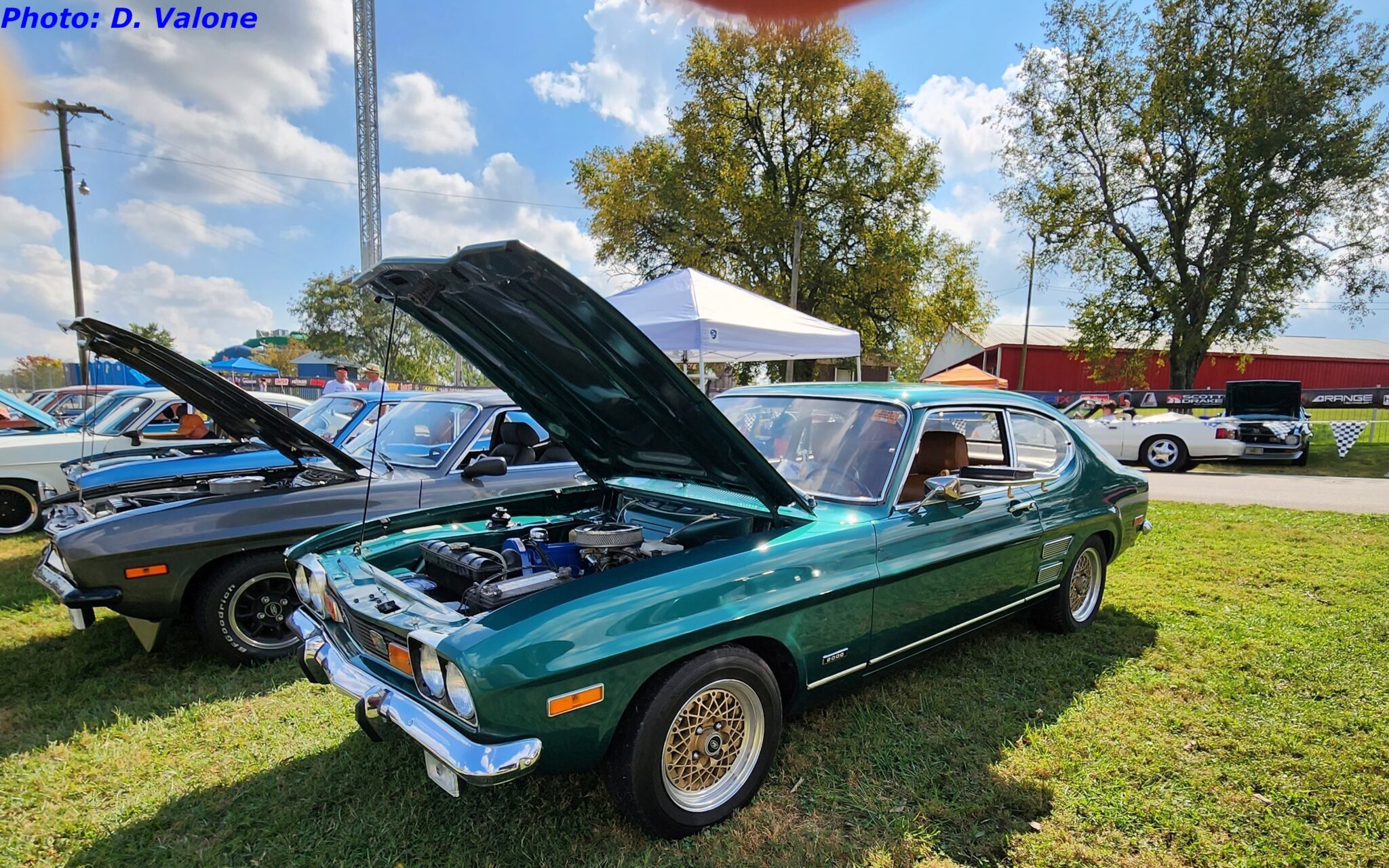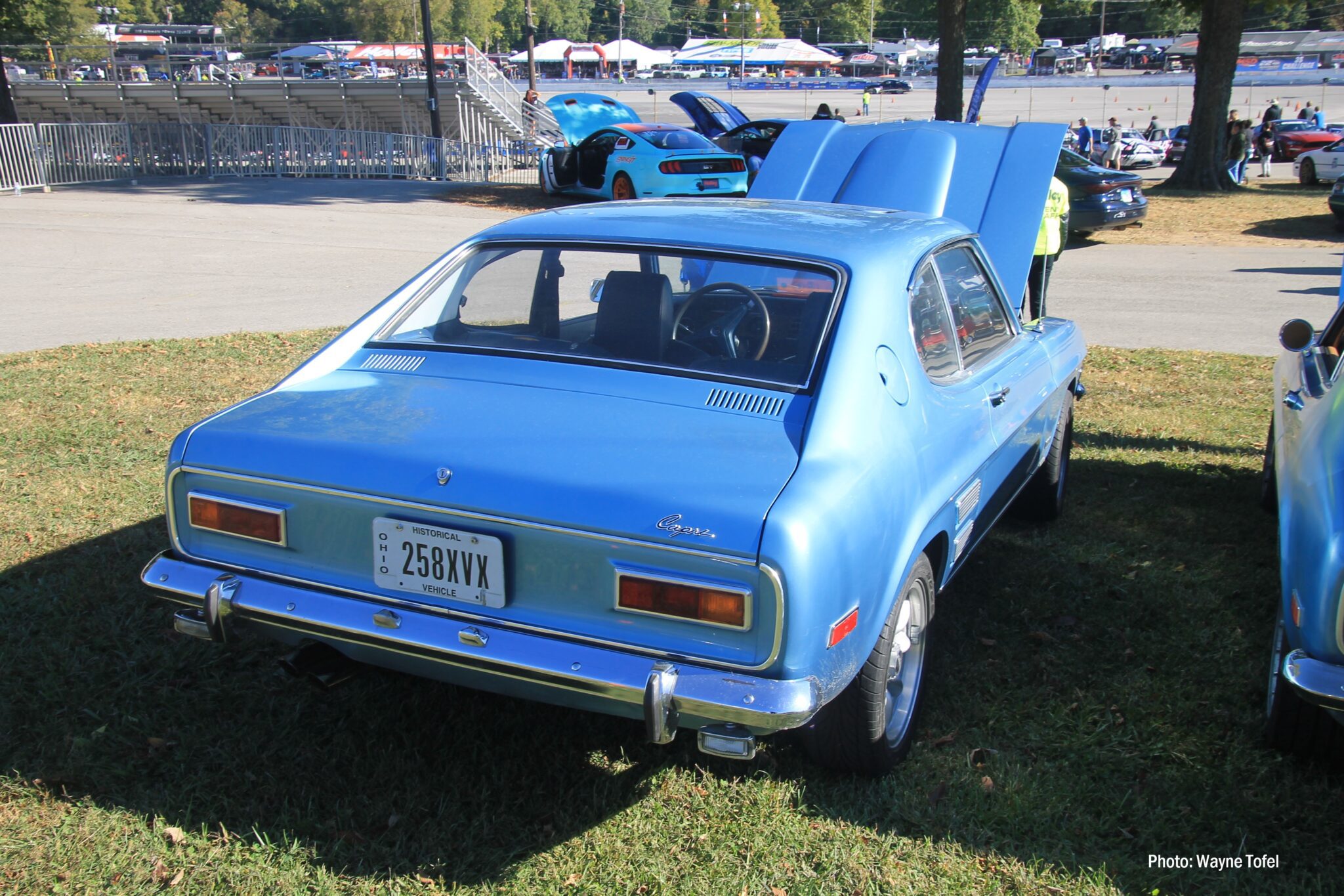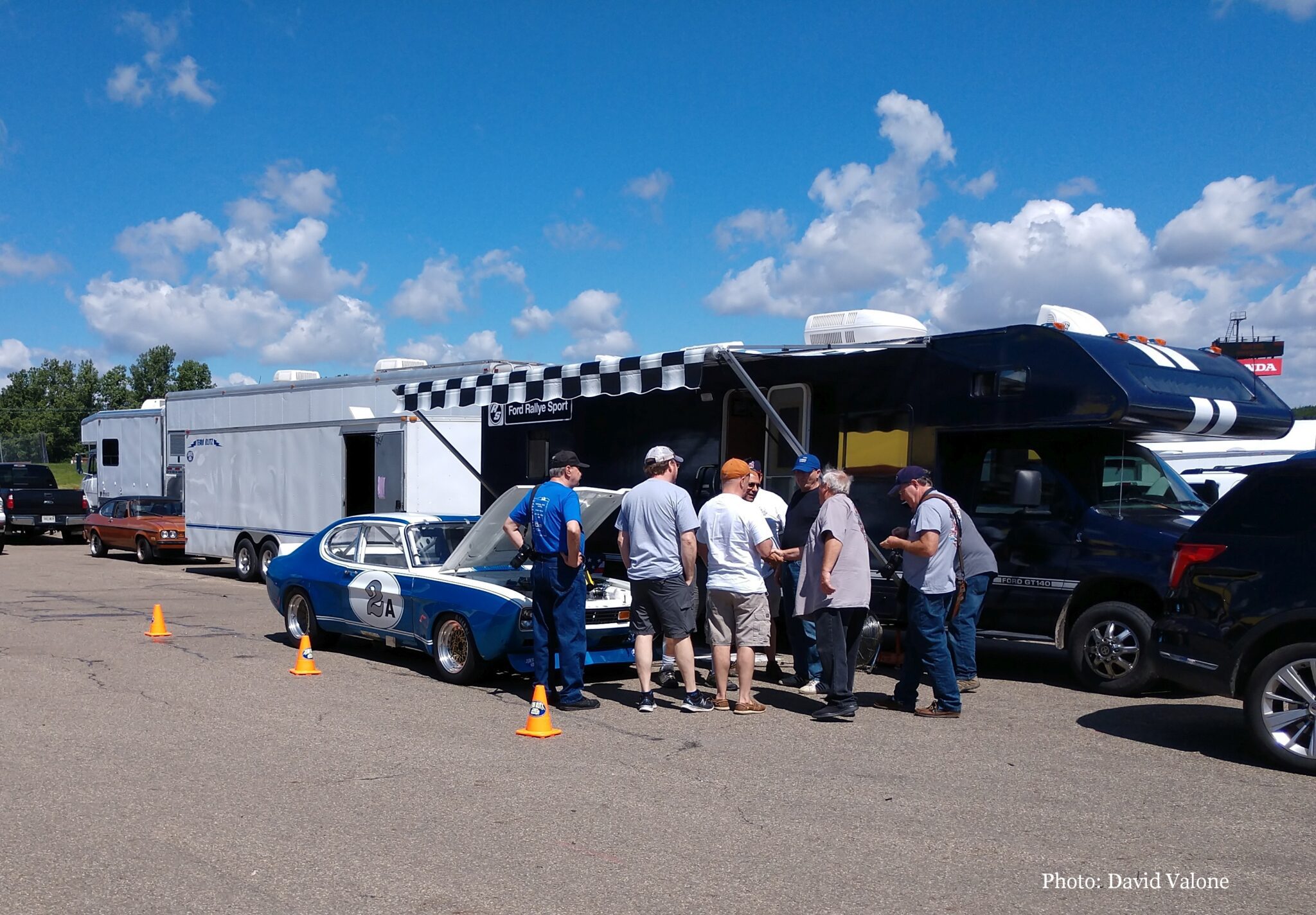 Friday dawned bright and sunny. We gathered up all day-trippers after the complimentary Hampton Inn breakfast (always good) and headed for our destination: the Mid Ohio Sports Car Course. This is where Norm Murdock of Team Blitz and CCNA founder was running his recently acquired ex-Werkes vintage-race Capri in the SVRA Grand Prix of Mid Ohio. We set off from the hotel with 5 Capri’s for the the 57 mile, 1 ½ hour road trip to Mid Ohio. Many Swarm participants, who were travelling from the north, elected to meet us there instead of backtracking. However, some hardly souls wanted the complete Swarm experience, and travelled back from whence they had just come the day before!