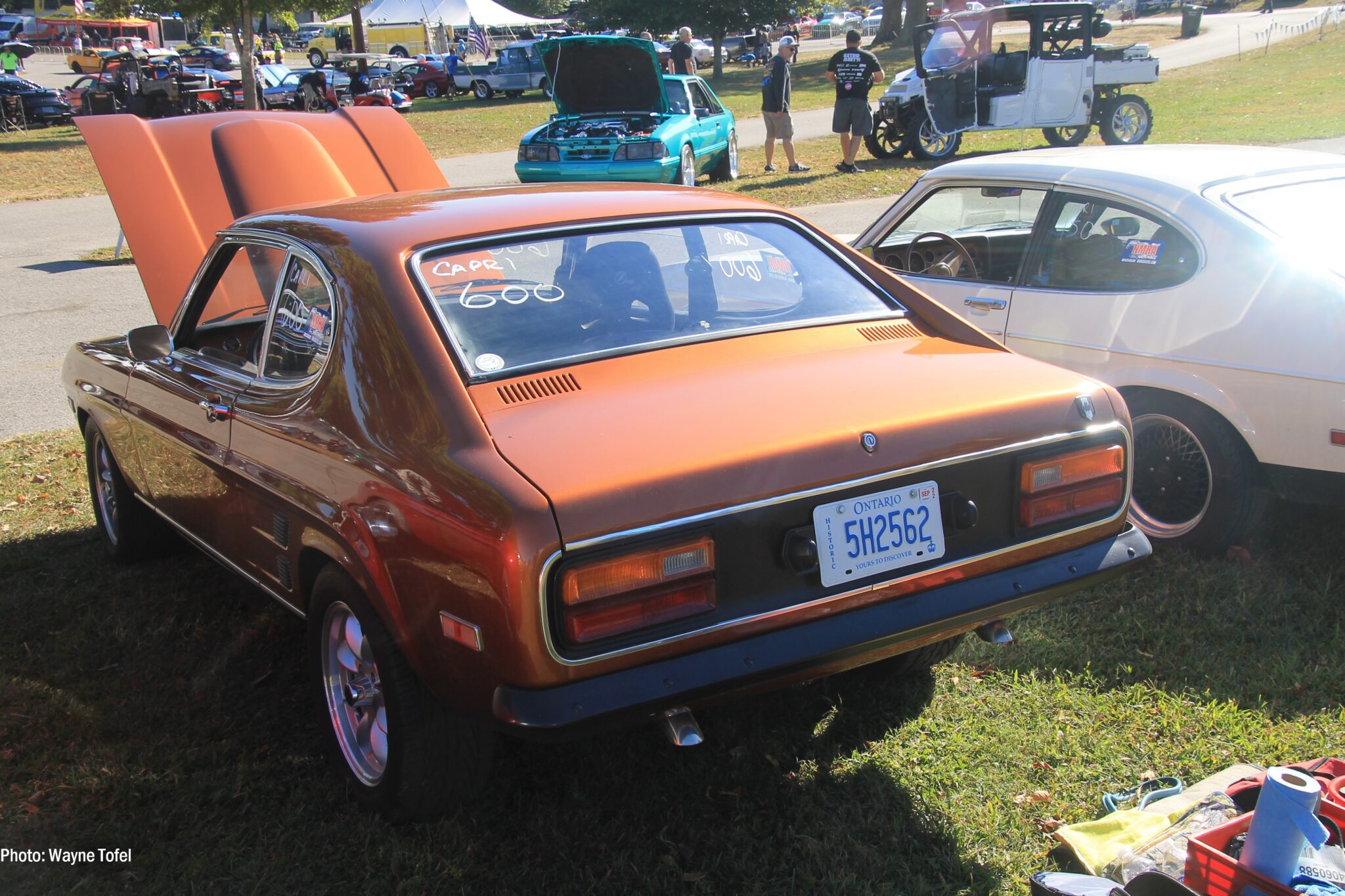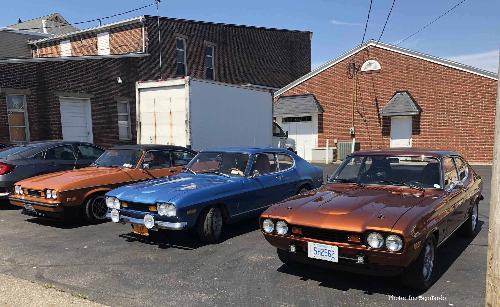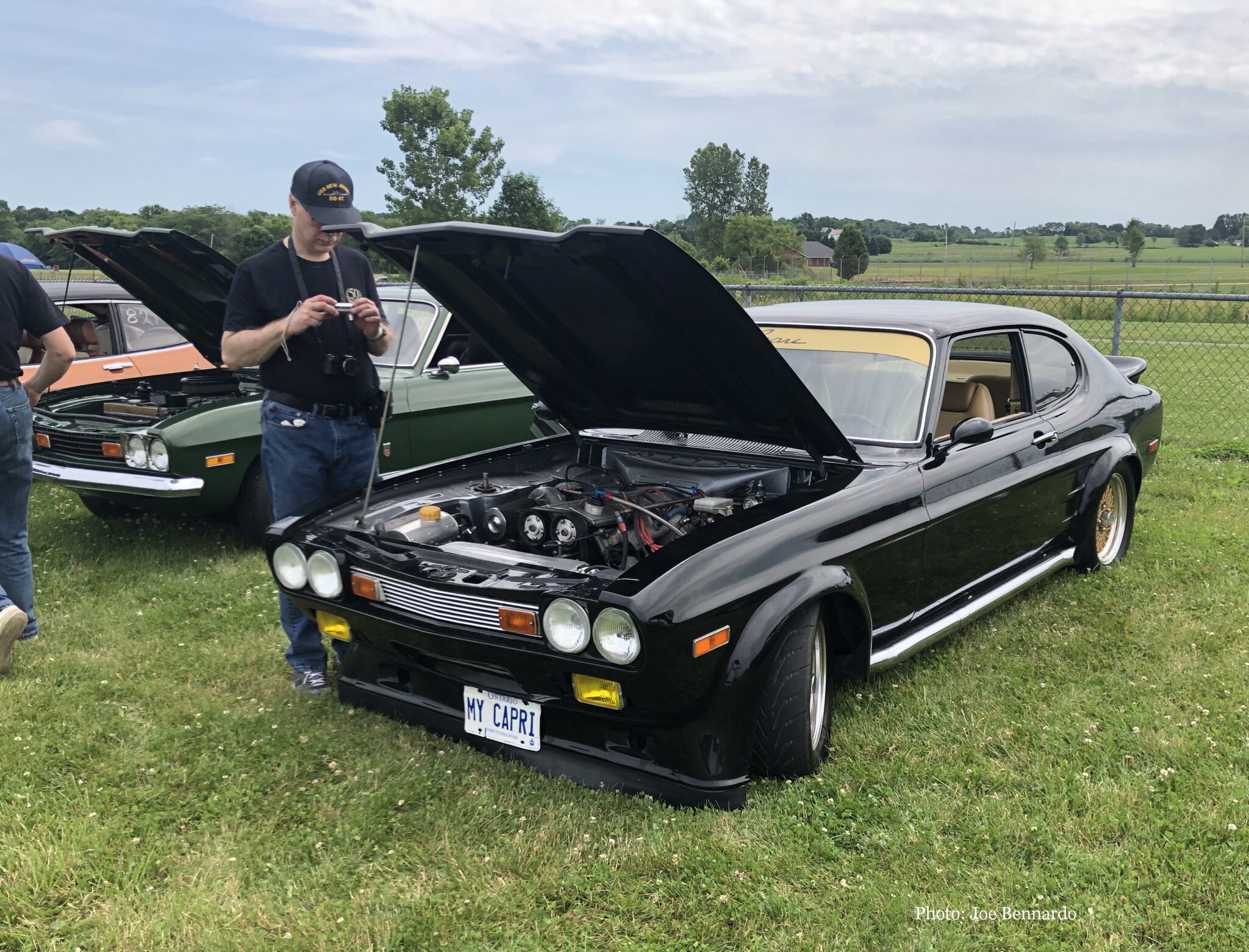 Once David’s car was buttoned up, socializing continued into the small hours, both in the hotel conference room and the parking lot. This enabled us to still be there to welcome Les Roberts and his uniquely modified Capri. Les travelled all the way from Toronto, Canada, and he arrived around midnight. Thus, started another round of catching up and bedtime slipped further away.