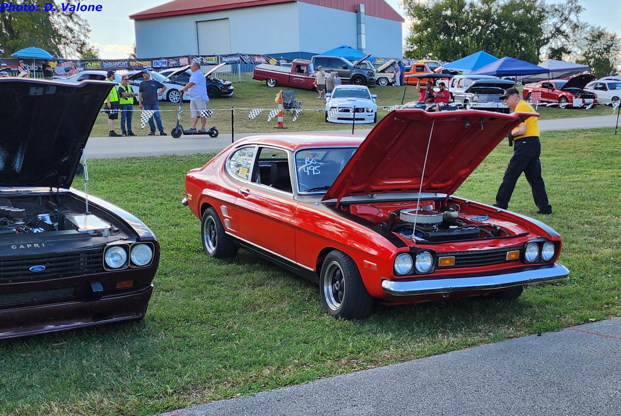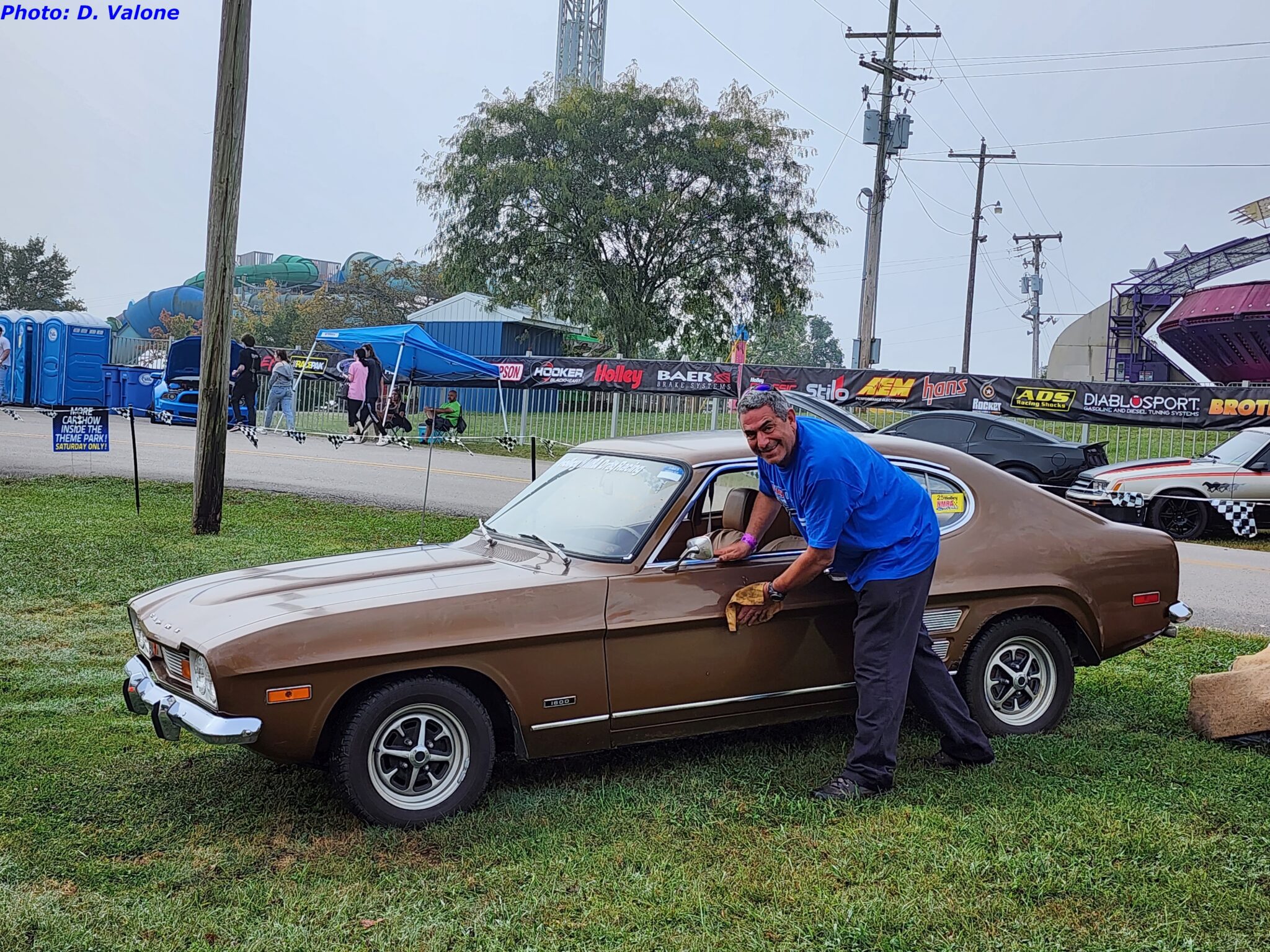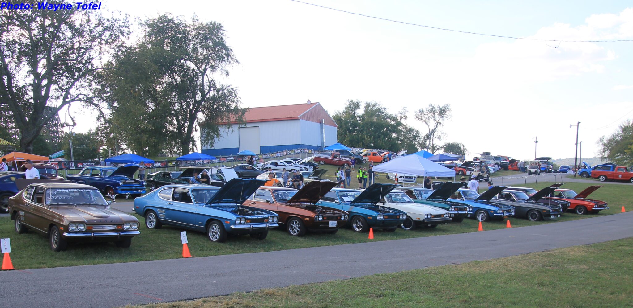 If we were all tired and groggy Saturday morning, Sunday was no better. So much so that we had a little trouble getting away to the autocross on time. In retrospect we should have cut and run when some were straggling, but we all stuck together as some of best photos in prior years have come from that 10-15 car convoy of Capri’s. This turned out to be our undoing, as the date change meant we were running with the Porsche club (very formal) and not the United Ford Owners of Ohio (very informal). Well, we missed the 10am drivers meeting and hence no autocrossing for us. Well, not quite all of us as Don Odiorne had gotten there early and registered with his rental Lincoln and was waiting patiently. So, he did compete and was justly awarded the Swarm autocross 2019 winner’s trophy. At least he was in a “Ford Family” product … (Hot Rod Lincoln? Anybody?? Really???)