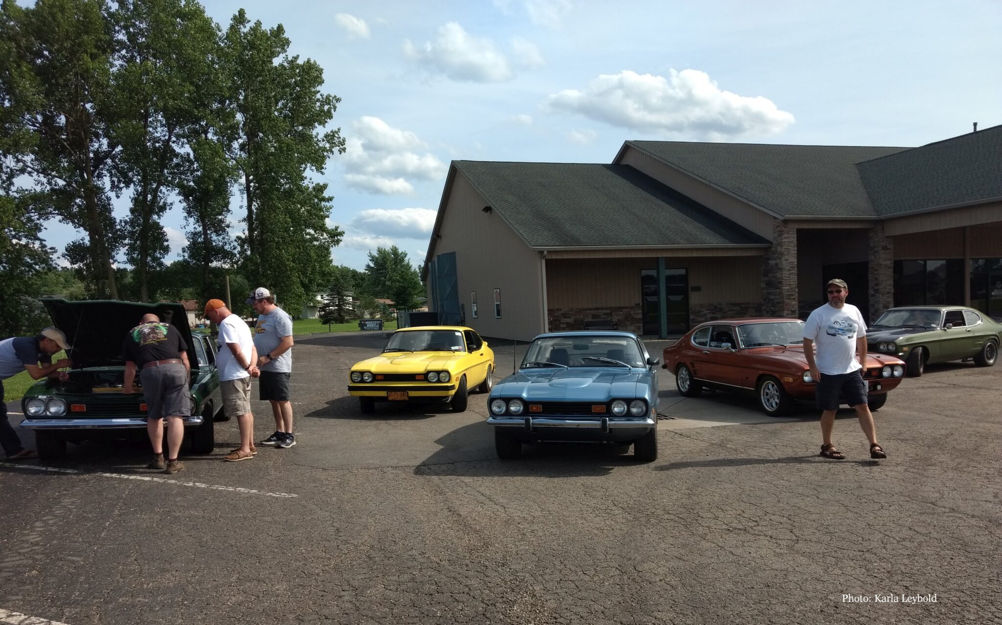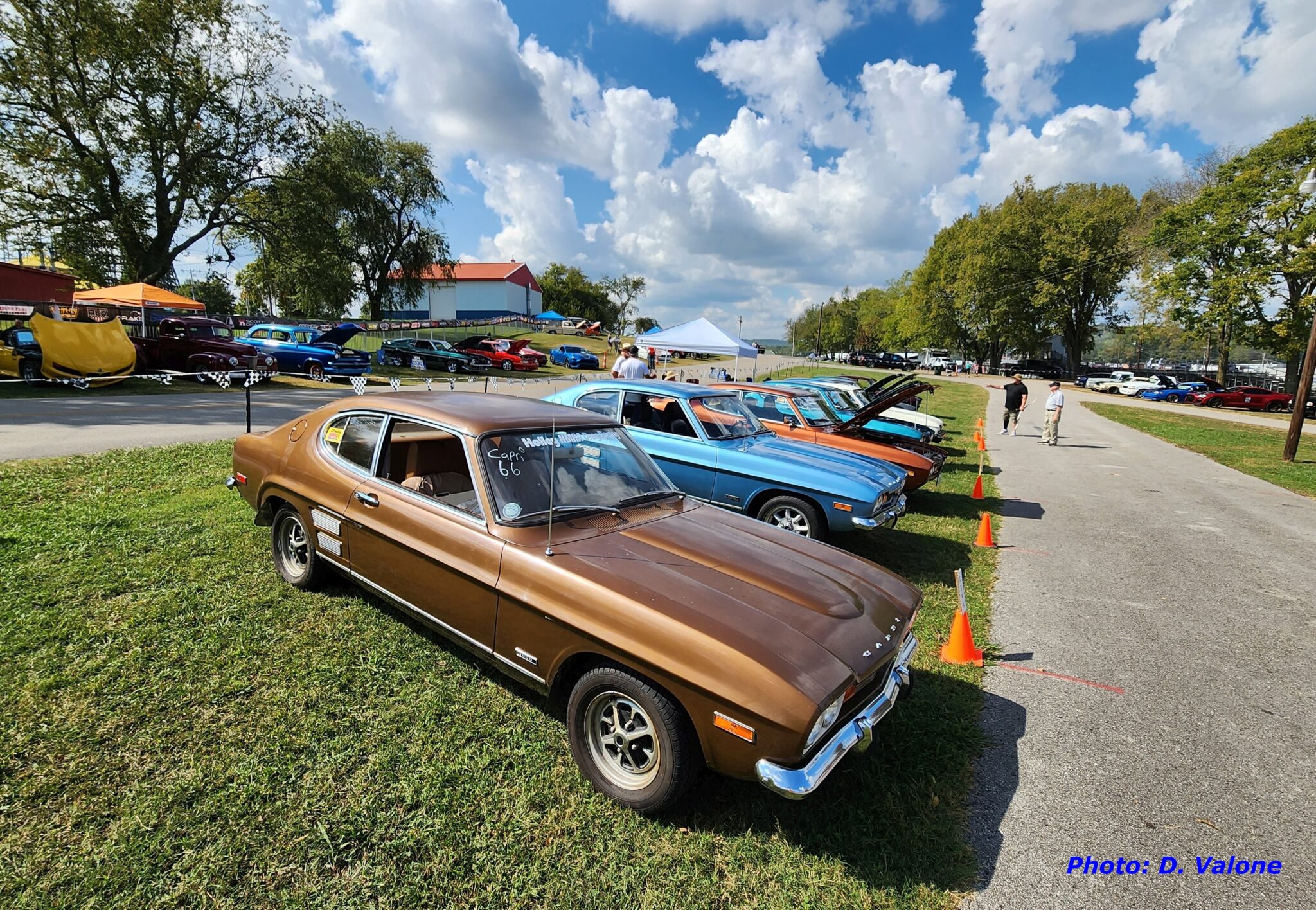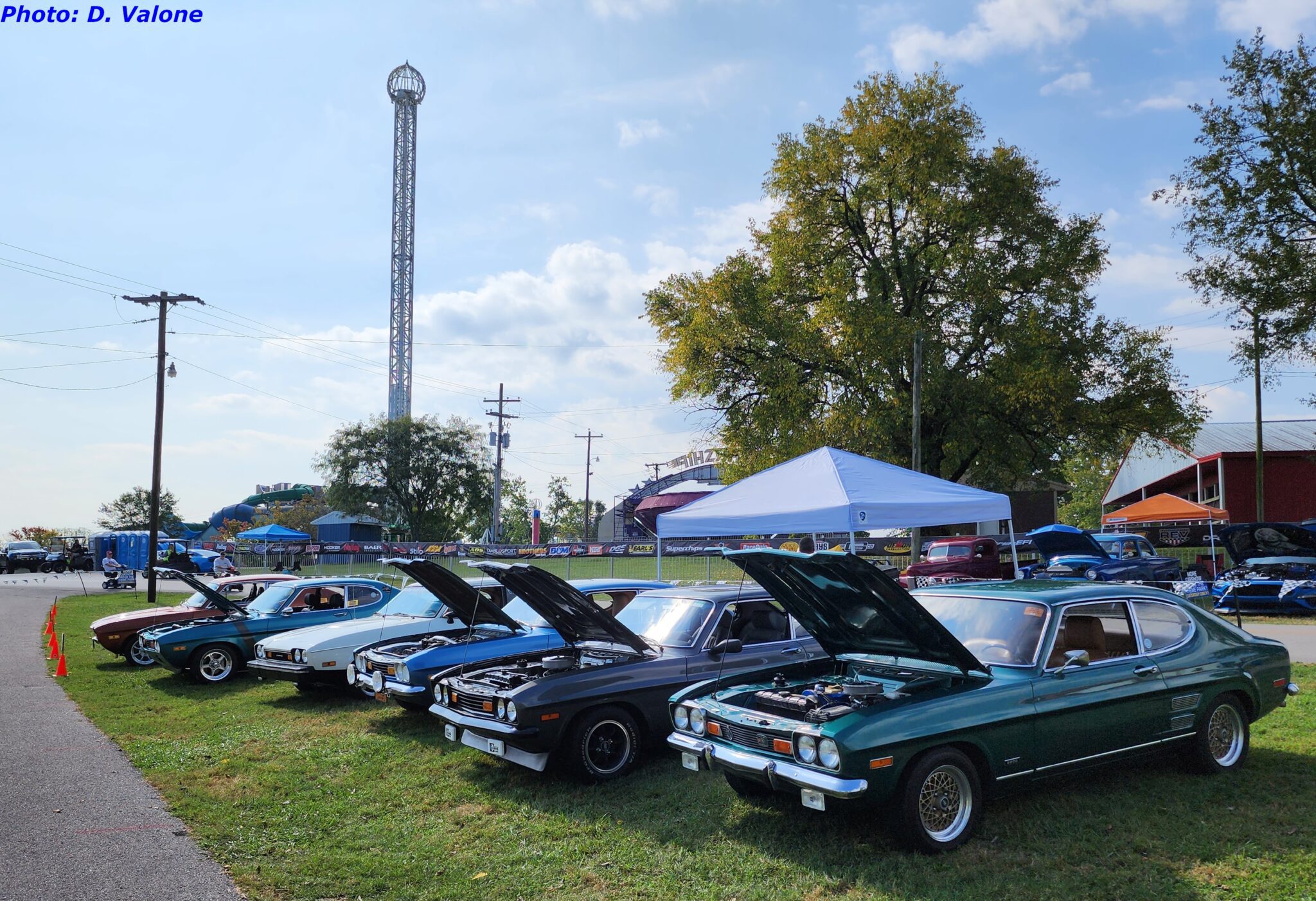 If we were all tired and groggy Saturday morning, Sunday was no better. So much so that we had a little trouble getting away to the autocross on time. In retrospect we should have cut and run when some were straggling, but we all stuck together as some of best photos in prior years have come from that 10-15 car convoy of Capri’s. This turned out to be our undoing, as the date change meant we were running with the Porsche club (very formal) and not the United Ford Owners of Ohio (very informal). Well, we missed the 10am drivers meeting and hence no autocrossing for us. Well, not quite all of us as Don Odiorne had gotten there early and registered with his rental Lincoln and was waiting patiently. So, he did compete and was justly awarded the Swarm autocross 2019 winner’s trophy. At least he was in a “Ford Family” product … (Hot Rod Lincoln? Anybody?? Really???)