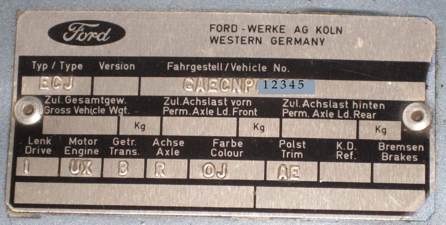 The sample VIN thus indicates a Capri produced in Genk, Belgium (a Ford of Germany plant) in March, 1977.